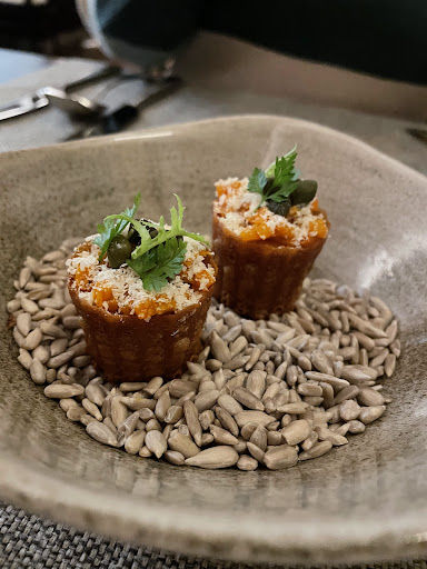 At the start we also got a one-biter of a pastry and a carrot filling. When I tasted that I knew I was going to like this restaurant. The pastry was thin and crunchy, the filling smooth. It was an amazing start.