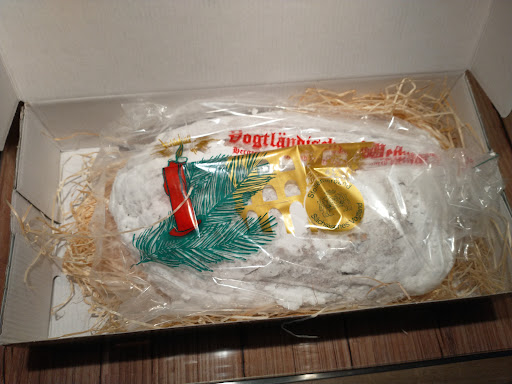 Da ich nicht mehr die Zwei Jährige Möglichkeit habe nach Falkenstein zur Reha zu Fahren ich aber gerne den Stollen mal wieder essen wollte nahm ich den Bestellservice der Bäckerei Frisch in Anspruch und bestellte mir den MEGA Köstlichen Vogtländischen Weihnachtsstollen Stollen im Geschenkkarton mit der Göltzschtalbrücke drauf ist. Danke für diesen Kundenfreundlichen Service und die sehr gute Kommunikation.