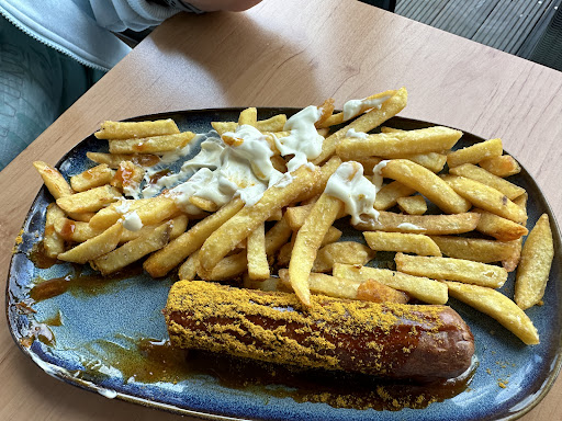 Optik Top, Geschmack Flop. Da ich der Meinung bin man sollte jedem Restaurant eine 2te Chance geben, war ich mal wieder mit 3 Personen hier, obwohl ich letztes Jahr schon vom Geschmack enttäuscht war. Diesmal war es jedoch anders, es war noch schlimmer als letztes Jahr. Optisch freut man sich auf das „leckere“ Essen, jedoch geschmacklich ist es eine Katastrophe, die Currywurst schmeckt irgendwie bitter, und nicht süßlich wie man es von Currysoße gewöhnt ist, und man muss auch sparsam mit der Soße umgehen, viel ist nicht dabei. Die Bratkartoffeln schmecken langweilig, und sind sehr fettig so das sie selbst nach 10 Minuten noch kochend heiß sind, während die Wurst schon in den Bereich warm kommt. Die größte Enttäuschung waren die Pommes, die waren wie zum dritten Mal frittiert, ziemlich dunkel, und man musste schon mit Schwung die Gabel reinstechen da man sonst keine Chance hatte diese sehr harten Pommes auf die Gabel zu bekommen. Zudem schmecken sie dann auch noch wie 3x gesalzen. Das System hat sich zu früher verschlechtert, früher gab es Lautsprecherdurchsagen mit der Rechnungsnummer, und man konnte das Essen an der Seitentheke im Restaurant abholen. Jetzt bekommt man so ein Meldeding, was nur blinkt und vibriert, jedoch stumm bleibt. Bei einem Platz in der Sonne muss man also auf die Vibration achten, da das Leuchten nicht zu sehen ist. Sitzt man im Restaurant, muss man dann zu abholen durch die „Schlange“ vor dem Bestelltresen, und wieder durch die „Schlange“ zurück. Das System war früher besser durchdacht. Geschockt war ich auch von dem Preis der Fischfrikadelle, wie auch schon ein einer anderen Rezension zu lesen, 5,50€, auf Nachfrage handelt es sich jedoch nicht um die selbstgemachte Riesen Frikadelle die es früher dort gab, sondern es ist eine ganz nochmal „gekaufte“. Sowas bekommt man überall auf der Insel im Brötchen ab 3,-€ Das Personal ist sehr sachlich und wirkt etwas genervt das man etwas bestellen will. Schade, es war mal ein gutes...