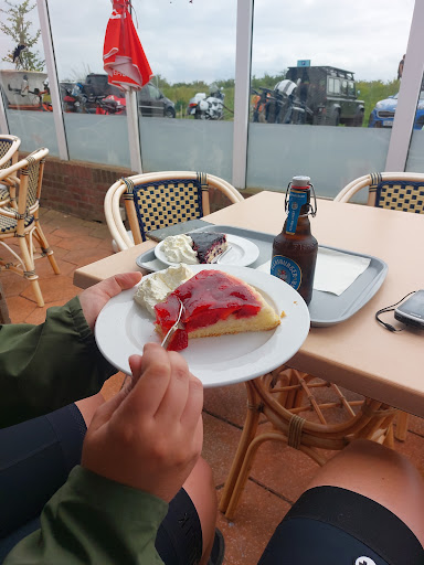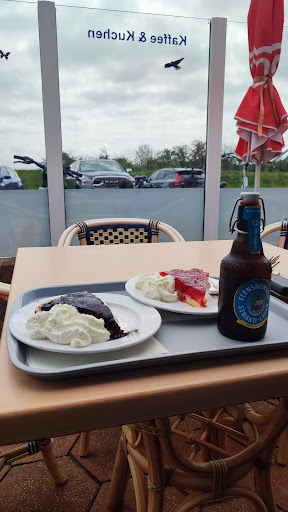 Aber ich konnte mich beherrschen und probierte das Fischbrötchen mit der Sherrymarinade. Meine Frau hatte einen Kuchen. Sehr, sehr lecker. Hier würden wir...