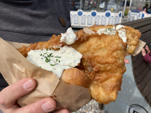 Read moreHabe hier gestern eines der besten Backfische meines Lebens gegessen, und als echter Nordeutscher, nach 47 Lebensjahren, hat das schon was zu bedeuten. Die Remoulade ist ebenfalls lecker, aber die Knoblauchsauce ist nochmals ne Spur genialer. Der Besitzer ist ein echtes Unikat, ein toller, humorvoller Typ, der sein Handwerk versteht. Die verwendeten Brötchen sind ok, aber bei der Qualität des Fisches und der Sauce ein wenig die Schwachstelle, hier könnte man noch perfektionieren, zwingend nötig ist dies aber nicht. Dennoch würde ich persönlich, bei Nutzung eines noch besseren, evtl. auch größeren Brötchens (für den Backfisch besonders sinnvoll) anstandslos nen Euro mehr bezahlen. Ich komme in meinem jetzigen Urlaub auf jeden Fall noch 1-2 mal wieder und überlege auch ggf. mal nen Tagesausflug nach Fehmarn zu machen um dies mit einem Besuch hier...