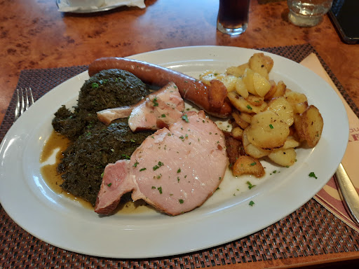 Also ich weiss mal wieder nicht so ich anfangen soll OK bei der Zwiebelsuppe das war jetzt mehr Wassersuppe mit Zwiebeln und ganz viel Salz der Käse darauf war zum Teil angebrannt. Dann hatte meine angetaute 😉ein Schnitzel mit Pommes das Schnitzel war von der Sache ganz OK wenn es nicht so penetrant nach Fritenfett geschmeckt hätte 🤷achso noch zur Zwiebelsuppe auf die Nachfrage wegen etwas Brot zur Suppe kam es auch prompt würde uns aber in Rechnung gestellt kann jeder davon halten was er will 😑Nun zu meiner gemischten Fischplatte 🥴 fangen wir mit den Bratkartoffeln an waren kalt würde reklamiert die Aussage bringe ich ihnen neue Teller blieb stehen Fisch würde langsam kalt😶🌫️neue Bratkartoffeln in einer Schale extra serviert heiß ja aber auch sowas von fettig nicht lekka,der Fisch TK Ware also echt das hätte ich auch Zuhause selber in der friteuse machen können und auch sowas von nach Fritenfett geschmeckt der Lachs tot gebraten und halt Alaska Seelachsfilets aus der TK wie Fischstäbchen in große und alles aus der friteuse wirklich schrecklich der Gurkensalat sowas von sauer und salzig also kannste ooch vergessen und die dazu gereichte Kräutersoße hat geschmeckt wie Stube und Küche 😱ach noch zu erwähnen die Jägersoße zum Schnitzel war wie Tapetenkleister mit Champignons also Fazit wer Zuhause die friteuse nutzt und sich Tütensuppe ißt der wird sich hier wieder finden wer gute frische Küche mag ist hier definitiv falsch kann auch leider die guten Bewertungen echt nicht nachvollziehen kann sich auch jeder sein Teil dazu denken einzig der Service war gut und der Wein von meiner angetauten war gut hat sie gesagt es tut mir schon ein bisschen leid solch eine Bewertung rauszuhauen aber bei einer Rechnung von 70 Euro bin echt angepisst wenn ich sowas vorgesetzt bekomme In diesem Sinne Eins ist noch zu erwähnen wer sagt tolles Ambiente ja klar die 80ziger haben angerufen und möchten ihre Möbel...