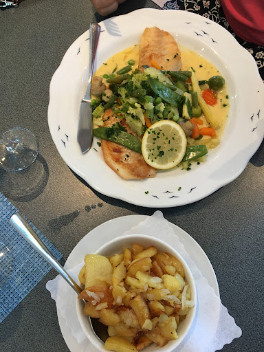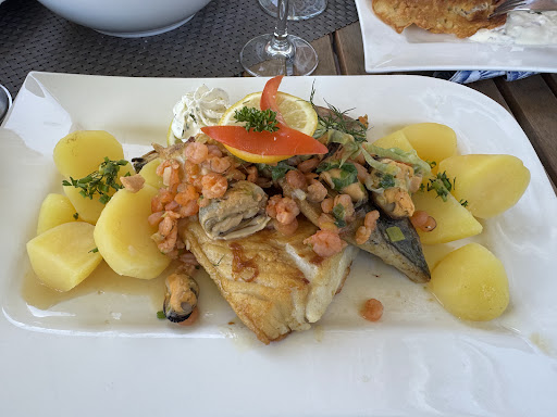 Ja ich gebe zu, das ich keinen Fisch esse. Ich hatte Schnitzel mit Pommes und Salat. Ich bin es gewohnt und kenne es auch nur so ( es gibt aber immer wieder Ausnahmen), das ein Schnitzel aus magerem Fleisch besteht. Hier war das Schnitzel aber mit Sehnen durchzogen und hatte besonderst am Rand einiges an Fett das ich wegschneiden musste ( ich Esse kein Fett). Somit blieb gut 1/3 auf dem Teller zurück. Bei einem Steek ist Fett normal aber nicht bei einem Schnitzel. Und ob man bei Messern einen Kompromiss zwischen Verletzungsgefahr und Nutzbarkeit eingehen muss bezweifle ich mal. Mit den angebotenen Messern, kann man einen zubereiteten Fisch zerteilen aber beim Schnitzel war Schneiden relativ unmöglich. 10-20 mal das Messer auf dem Schnitzel hin und her geschoben brachte dann auch mal ein Ergebnis aber kein Erlebnis. Daran sollte noch etwas gearbeitet werden. Die Essenspreise sind akzeptabel nur an den ( hier meine ich Alkoholfrei) Getränkepreisen sollte man wie überall auf der Insel stark Arbeiten ( undzwar nach unten. Jeder kennt die Preise die man im Laden bezahlt. Unternehmer/ Gewerbetreibende kaufen im Großhandel ( ich kenne die Preise dort und arbeite selbst bei einem Getränkehersteller) und zahlen dort erheblich weniger wie im Einzelhandel. Aber dem Kunden das 10fache zu berechnen was dieser selbst im Einzelhandel zahlen müsste/würde, finde ich Persönlich Moralisch verwerflich. Das Ambiente dagegen gefällt und die Bedienung war auch sehr Höflich. Einige Parkplätze direkt vor der Haustür. Wenn das mit dem Essen, dem Besteck und den Getränkepreisen passen würde/ gepasst hätte, dann wären 5 Sterne absolut in Ordnung gewesen. Ich kann nur hoffen,daß meine Bewertung ernst genommen wird, und die genannten Punkte überdacht werden wobei ich glaube, das besonderst 1 Punkt wohl nicht in Erwägung...