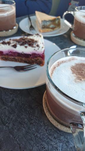 Die Snacks wie Flammkuchen haben wir im Sommer getestet und waren mega lecker. Heute haben wir uns den heißen Kakao und ein Stück Kuchen geschnappt. Preislich alles total im Rahmen. Der Kuchen war lecker (Kirsch-Haselnusstorte) und der Kakao okay. Einen Stern ziehe ich jedoch ab, da es sich leider nur um,, Automatenkakao" handelt. Das finde ich tatsächlich schade. Aber es ist kein Beinbruch und er wärmte uns zumindest auf. Wir haben unser Tablet mit Kakao und Kuchen mit in den Bulli nehmen dürfen da das Wetter ein Draußensitzen nicht wirklich zuließ.