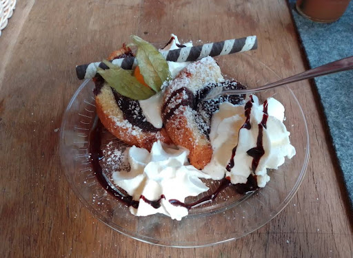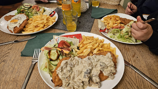 Read moreDas Essen war ein Anschlag auf das gesamte kulinarische Handwerk - Der Fraß grenzte an Körperverletzung - Der Service war lahm (für 40 Minuten Wartezeit - sagte man uns "wir waren doch fix...") - Während unseres gesamten Aufenthalts von 80 Minuten stand auf dem Terassentisch das dreckige Geschirr - Das Ambiente einfach mehr als sparsam und altbacken - Das Schnitzel war totgeprügelt auf eine Dicke von 5 mm, es war trocken und totgebraten - es gab null Soße oder Dipp aber Kroketten - furztrocken und zum Salat gab es weder Dressing noch Essig oder Öl - kein Salz und Pfeffer auf dem Tisch - einfach das Schlimmste, was mir jemals im Restaurant für sehr sehr teures Geld wiederfahren ist - Schnitzel mit Kroketten und Salat 12,90 !!!! Euro (Ruccola, Chicoree und Radiessprossen mit einem Spalt Tomate, einem Spalt Zitrone, Spalt Orange und einer ganzen Stachelbeere) - der blanke Ekel auf...