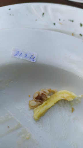 Das Essen war lecker, jedoch war ein Etikett im "Linsenteller" (Foto), das ich zum Glück nicht verschluckte aber dadurch ein (bereits 3 Tage überfälliges) Datum lesen konnte.