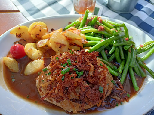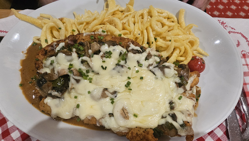 Ich habe von meiner Nachbarin von euch erfahren und zum 5 jährigen Jubiläum zwischen meiner Partnerin und mir, haben wir uns euch ausgesucht und ich wollte euch einfach mal testen. Als erstes, freundlicher Empfang, Kleiner Gruß aus der Küche mit gefüllten Champions war sehr lecker. Dann die Vorspeise, diese muss sein. Knoblauch Suppe mit Sahne und einem Streifen Speck, woooow noch nie so eine Knoblauch Suppe gegessen. Zwischendurch neues Bierchen bestellt und kaum Wartezeit 👍 Ich hatte den Grillteller und meine Partnerin hatte Tiroler Schnitzel, ich bin überrascht über diese Portionen, mega lecker. Mein empfinden war freundlich, hilfsbereit, zuvorkommend und sie waren richtig gut drauf. Wir kommen gerne wieder und macht weiter so und nicht nachlassen. Vielen Dank für den schönen Abend und das leckere Essen an das gesamte Team. Kleiner Tipp. Versucht es vielleicht hin zu bekommen, das alle Karten akzeptiert werden, weil es ist schon ein blödes Gefühl, wenn ein Gast nicht so viel Geld dabei hat und die Karte nicht akzeptiert wird. Das ist das einzige was ich kritisiere, aber dennoch kein Punkt abziehe.