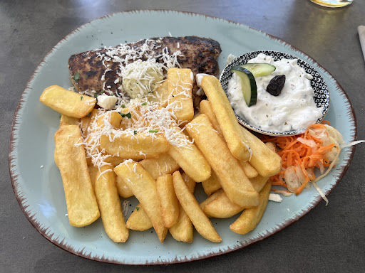 Gyrusteller mit Pommes-Frites: Das Fleisch war saftig aber nicht richtig kross, - so wie man es von Gyros gewohnt ist. Es ähnelte eher einem Puten-Döner.