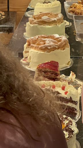 Downstairs you can buy cake separately. The other chaos, the employee use a small stairs to step up for the higher selves to reach some cakes… would be no problem till she does not do with her gloves to fix the stairs which she use to fully touch the cakes… basically you get “to-go” all the dirt from her shoes with your cake… yeah… and of course you can wait till she serve all the waitress it does not matter that you are waiting there…