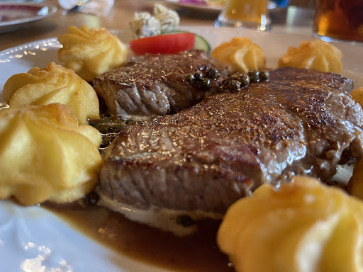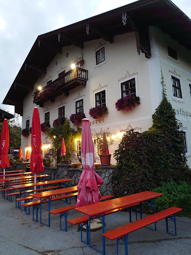 Wie der Zufall so will! Da wir woanders nicht gut aufgenommen wurden, sind wir kurzerhand weitergefahren und hier eingekehrt, und ich kann nur sagen, ein Glücksfall. Ein wunderschönes, uraltes uriges Wirtshaus mit sehr guter rustikaler und ehrlicher Küche. Tolles Fleisch, prima Pommes und leckerer Beilagensalat (habe mir direkt noch einen zweiten bestellt). Ich hatte Schweinenacken paniert mit Pommes und Salat und mein Mann Cordon Bleu mit Obatzter gefüllt, köstlich, ebenfalls mit Pommes und Salat. Die Qualität vom Fleisch ist sehr gut, die Portionen sind sehr großzügig, deshalb passte auch nur noch ein Apfelstrudel mit Sahne und Vanilleeis, den wir uns geteilt haben, und die Preise sind moderat (bis auf den extra Beilagensalat, der wirklich mini war und stolze 4,20 Euro kostet, das finde ich zu teuer!). Hier kehren auch die Einheimischen gerne ein. Die Bedienung war sehr freundlich und flink. Wir haben uns sehr wohl gefühlt, denn auch hier war unser Hund willkommen. Wir kommen ganz bestimmt auf unserer nächsten...