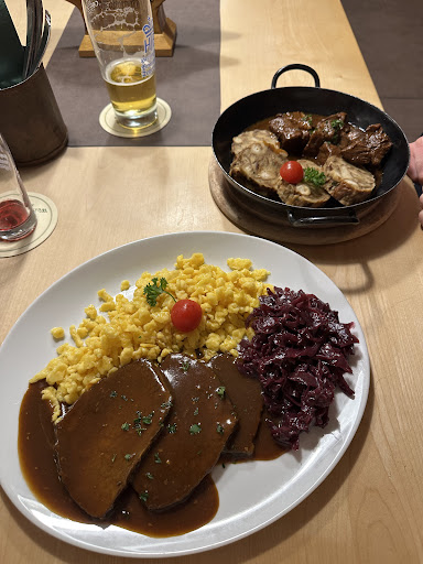 It's great to eat genuine Bavarian food with the locals. The daily specials were generous, well presented and excellently cooked. There was only one wait staff on duty, but she handled drink and food orders efficiently and with a cheerful manner. The service was very efficient. Meal orders from the kitchen came out very promptly. The only downside was some cigarette smoke that wafted from the outside terrace to the inside. This restaurant is well...