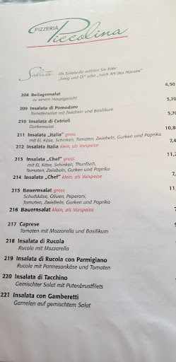 Die Pizzeria Piccolina ist leider nicht zu Empfehlen!Sehr Unfreundlich und total gestresst und Hektisch wirken die Inhaber ... Und egal was ich jetzt schreiben würde,die Inhaber lassen keine Kritik zu! Rezessionen die Missstände aufzeigen werden von den Inhabern nicht ernst genommen oder die Inhaber Defamieren die Rezessions schreiber.Es wird auch nicht mal in Erwegung gezogen Verbesserungen vorzunehmen ...echt schade! Love Chris
