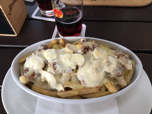 Der Standort des Lokals ist wirklich schön. Direkt vor der wunderschönen Gallus-Kirche und den beiden alten Schulen von Flörsheim. Sehr schöne und geschichtsträchtige Gebäude. Dazu Kopfsteinpflaster und die Nähe des Mainufers. Das Lokal selbst befindet sich auch in einem schönen, alten Fachwerkhaus. Die Parksituation ist im alten Ortskern natürlich nicht sooo einfach, aber nicht unmöglich. Die Flammkuchen waren superlecker, das Kuddelmuddel ist zwar ganz schön mächtig (etwas für den größeren Hunger), aber auch super. Dann hatten wir noch Schnitzel mit grüner Soße (war Tagesgericht). Alles super. Empfehlen kann ich die hausgemachte Limonade. Die gibt es in drei Sorten. Nicht so süß und genau das richtige an heißen Tagen. Das Einzige was ich zu bemängeln habe ist, dass es keinen alkoholfreien Hugo gibt (ich muß ja...