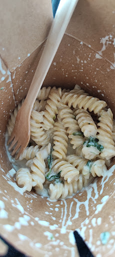Read moreSchön anzusehen von außen mit der offenen küche und den Sitzgelegenheiten mehr aber auch nicht. Dachte mir okey ein kleiner mittags Snack kann ja nicht schaden oh glaubt mir einfach lassen. Hab eine kleine Box für 6.90€gekauft wo ich beim Chinesen bestimmt besser davon gekommen wäre. Spinat und gorkonzola sollte es werden ich denke nicht das die Sauce je in ihrem Leben schon Mal mit dem käse in Kontakt gekommen ist. Vielleicht lagen sie Mal neben einander mehr aber auch nicht. Geschmacklich eine 6. Es schmeckt halt nur nach Nudeln keine Würze und kein neben Geschmack Italien hier komplett fehlgeschlagen und alles für 6.90€ bin ja froh das ich nur einen kleinen Hunger zum wegschmeißen habe.