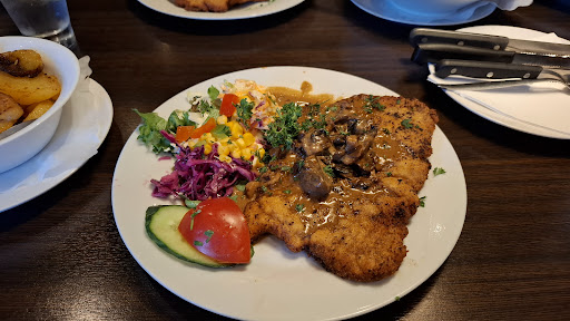 We came late afternoon on a Friday, each enjoyed a starter and main course sharing 1/2 L of wine. We were welcomed and seated ourselves, service and staff were friendly and accommodating. The food arrived within a reasonable amount of time, was freshly prepared and well presented. The salad garnish on both starters was delicious and crisp with a nice dressing. The shrimp cocktail was a good size portion, the Camembert had old style fried parsley which I loved. For mains we both chose a Schnitzel - the hunter style was accompanied by fresh mushrooms and the Bernaise sauce on mine was home-made from scratch. We thoroughly enjoyed the cozy atmosphere and good food. The prices were in the upper medium range but adequate for the food and service, which was way...