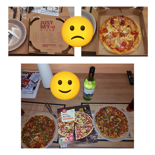 Mein Fazit: bestellen ja, aber Sonderzutaten wählen momentan wohl eher nein. Schade, aber die "normalen" Pizzen sind ja auch lecker.