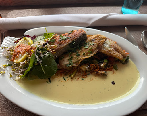The food was outstanding. We started with the fish soup, which had a delicate, flavorful broth with just the right amount of spice, filled with tender fish and seafood. For the main course, we chose the fish platter, featuring three different types of fish served over vegetables and accompanied by a delicious gravy. Each bite was a delight. To finish, we indulged in the apple strudel, served warm with vanilla ice cream and creamâa perfect ending to the meal.