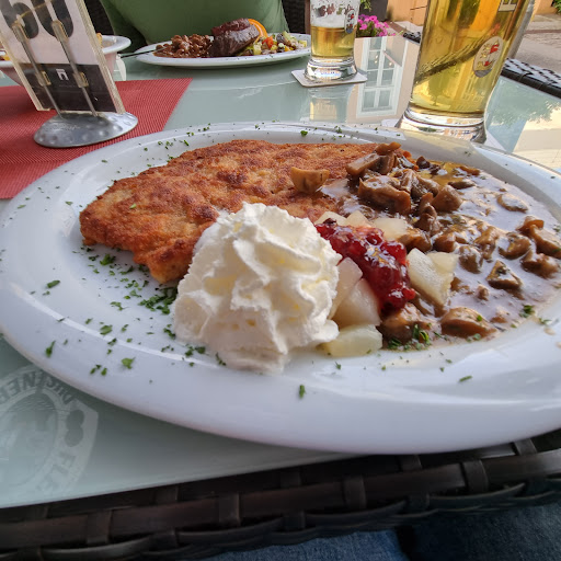At first sight a great place, nice staff, classy atmosphere. But for my taste quite oldfashioned. If you are a 70plus German citizen, I am sure it will be ok, like nothing changed in 50 years. Schnitzel was good, the sauce very salty and uniform/canny in flavour. The Bürgermeisterplatte with 3 pieces of grilled meat overcooked (too well done) and the steak very peppery/salty. The vegetables were cut to small pieces (and perhaps cut yesterday?), not tasting very fresh, and with some oregano so that my first association in taste was a frozen supermarket pizza. And the serving took...