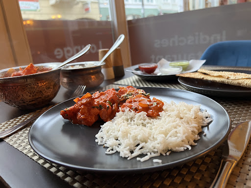 Wir waren zu 3 zuzüglich unserem 1 jährigen Sohn dort. Leider mussten wir auf das Essen über 1 1/2 h warten. Was die geduld unsere Kindes sehr auf die Probe stellte und wir schon überlegten das Essen zum Mitnehmen zu nehmen. Die hatten die pakora Vorspeisenplatte bestellt und ich hatte gesehen das dieses Restaurant scheinbar auch papdam mit 3 verschiedenen soßen als zusätzliche kostenlose Vorspeise serviert. Als dann aber nur das pakora kam dachte ich das man das extra bestellen musste. Bei den Platte gab es leider nur eine für mich nicht wirklich passende rote asiatische Soße. Nachdem dann die Platte fast alle war kam plötzlich doch das papadam mit den drei Soßen die ich gerne auch mit dem pakora kombiniert hätte. Das war dann doch etwas enttäuschend. Wie die getränke neigten sich dank der langen Wartezeit immer mehr dem Ende und selbst als dann die 1. Leer waren und man ständig direkt an uns vorbei gelaufen ist musste ich einen Kellner stoppen. Das Essen kam dann endlich alles zur gleichen Zeit war aber geschmacklich aufgrund der soßen die es ja im Endeffekt ausmachen eher langweilig. Bei meiner Chicken Masala war dieses viel viel zu süß und 1 zu eins die gleiche die auch meiner Schwiegermutter bei einen völlige anderem Gericht gereicht wurde nicht halt bei mir wesentlich schärfer (auf meinen Wunsch). Das Butter naan Brot war sehr lecker. Das lasse süß war wiederum weit von süß entfernt ansonsten geschmacklich okay. Leider hatte dieses Inder kein bhatura.