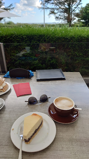 Sehr nettes Café mit einer mit einer Markise überdachten Aussenterrasse und einigen Sitzplätzen im Garten mit Blick aufs Meer. Im Garten finden sich ein paar beeindruckende Hortensien. Auch innen findet man eine helle und freundliche Atmosphäre vor.