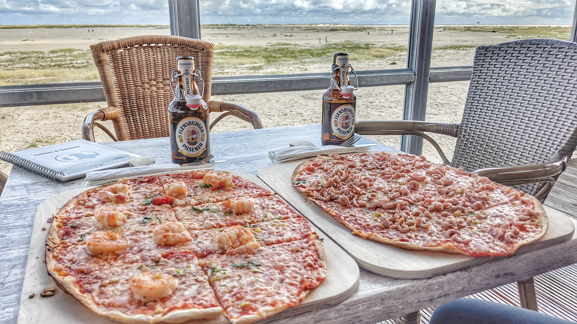 Das Plöppen von Flens aus den Strandkörben und die Sonne im Aperol Spritz bilden mit den leckeren Speisen eine genussvolle Atmosphäre, um die Zeit zu vergessen und den Ausblick zu genießen.
