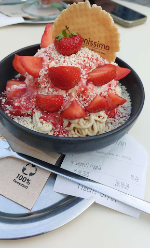 Read moreDas Eiscafe liegt in der Fußgängerzone von Forchheim. Das Cafe ist kinderfreundlich, leider etwas zu eng für einen Rollstuhl. Man kann Innen und Außen sitzen. Das Personal ist sehr freundlich und kompetent. Es gibt eine gute Auswahl an Frühstücke, Eisbechern, Crepes, warnen und kalten Getränken. Hier wird noch das Eis selbst hergestellt. Es gibt eine Stempelkarte für Cafe - 10 Stempel - 1 Cafe gratis - Cafe schmeckt sehr leckere 👌In der Nähe gibt es ein sehr sauberes und helles Parkhaus. (Gebührenpflichtig) Mir ist heute bei einem Besuch aufgefallen, das es Selbstbedienung gab. Das hat mir nicht gefallen. Wenn ich ins Eiscafe gehe möchte ich gerne bedient werden, denn soviel Geldersparnis ist es auch nicht. Schade für die Aktion. Ich hoffe, dass dies nicht jeden Tag so ist. Auch fand ich es nicht so schön, dass es den Michshake in Plastikbechern gab. Obwohl wir im Cafe saßen und das bei den Disskusionen über Plastikmüll - Plastikvermeidung. Das...