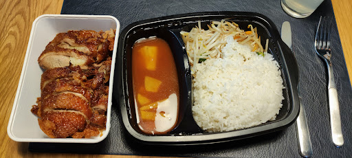Read moreInsgesamt gutes Essen, teilweise sehr eigenwillig interpretiert. Wir hatten gebratene Nudeln mit Ente, Ente in rotem Curry mit Kokosmilch, und Gebackenes Huhn süß-sauer. Die gebratenen Nudeln waren prima. Die Soße der Ente in rotem Curry mit Kokosmilch ging leider garnicht! Das Fleisch war wirklich super, was da aber als rotes Curry mit Kokosmilch verkauft wird, hatte damit nichts, aber wirklich garnichts zu tun! Die Soße erinnerte eher an eine relativ geschmacklose Instant-Pampe mit Ananas, Brokkoli, Maiskolben etc. Die Soße hatte wirklich keinerlei Eigengeschmack und Kokosmilch war da definitiv auch nicht enthalten (dafür auch 2* Abzug). Aus meiner Sicht kann das nur ein Fehler in der Küche gewesen sein, denn auf der Packung stand die richtige Nummer. Das Huhn in Süß-sauer Sauce war gut, auch hier Fleisch super, leider aber auch bei dem Gericht die Soße mit eher wenig Geschmack. Süß-sauer kam durch, war aber nicht so wie man das sonst kennt. Portionen mehr als ausreichend, auch bei großem Hunger. Preislich nicht günstig, aber völlig ok, wenn die Soße nicht so ein Reinfall...