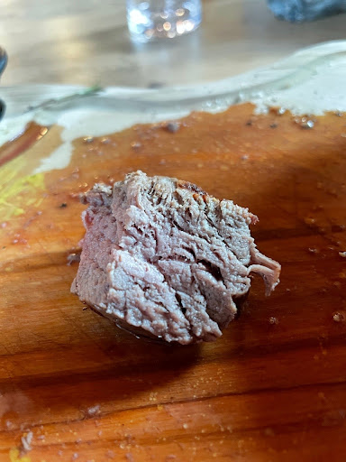 Aber nun zum Fleisch… -Ein durch und durch trockenes und fernab von Medium gebratenem 300 g Filetsteak für über 40 € wertet auch der Rosmarinzweig und das stark übertriebene Meersalz auf des Fleisches Oberfläche nicht mehr auf.