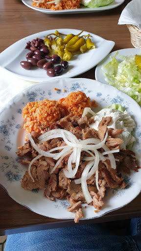 Nun gab es keine Leber mehr, heißt ein Souvlaki, OHNE Reis und mit Bauernsalat. Was kam ein Souvlaki mit Reis und mit standart Beilagen Salat.