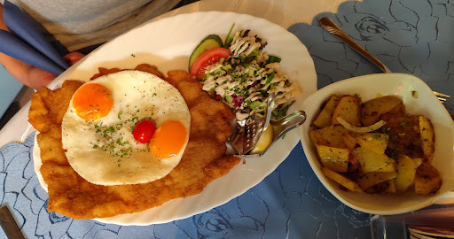 Das absolute Highlight waren aber die Schnitzel – riesig, perfekt paniert, wunderbar saftig und geschmacklich ein echter Genuss. Dazu gab es knusprige Bratkartoffeln/ Pommes und einen knackigen Beilagensalat. Wer Schnitzel liebt, kommt hier voll auf seine Kosten – „mega“ trifft es wirklich auf den Punkt!
