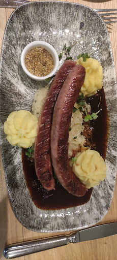 Read moreWir waren unter der Woche auf einer Firmenevent eingeladen. Gemütlicher Gastraum welcher auf rustikal / modern hergerichtet ist. Der Empfang vom Personal war freundlich. In der sehr sehr übersichtlichen Speisekarte hatte ich mich für die Thüringer Bratwürste entschieden für knappe 19€, ohne Beilagensalat. Die Würstchen waren geschmacklich in Ordnung, jetzt nichts besonderes. Das Sauerkraut und der Kartoffelbrei dürften etwas pikanter sein. Der Kartoffelbrei war sehr sehr fest. Die Portion war schon etwas sehr dürftig und lieblos angerichtet. Auch die anderen Gerichte.