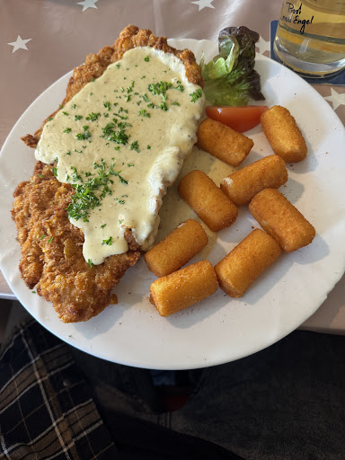 Read moreWir waren heute mit 6 Personen zum ersten Mal in diesem Restaurant zu Gast! Der Service war sehr freundlich und sehr zuvorkommend! 2 von uns haben das Rumpsteak gegessen, 3 hatten verschiedene Schnitzel und einer einen Flammkuchen! Die Beilagen Salate konnten wir an der gut bestückten Salatbar selbst zusammen stellen! Dann kamen auch schon die riesigen Portionen an unseren Tisch! Die Rumpsteak waren auf den Punkt Medium gebraten und ein Rohgewicht von mindestens 500 Gramm, mit selbstgemachter Kräuterbutter und frischen angeschwitzten Knoblauchscheiben! Die Schweineschnitzel waren super knusprig paniert und sehr saftig! Rahmsauce mit frischen Champions bei einem und mit Tomaten und Käse gratinierten bei den beiden anderen Schnitzeln! Alle 3 haben auch fast die Hälfte ihrer Schnitzel als Care Paket eingepackt mit nach Hause genommen da die Portion echt riesig war! Danach hatten wir noch mit riesige Vanille Eis und Heiße Himbeeren und Apfelstrudel Portionen zu kämpfen! Das Ambiente ist Rustikal Gemütlich und einer Reithalle und Vereinsheim angemessen. Der ein oder andere wird eventuell beim Blick auf die Speisekarte denken das die Schnitzel mit 18.90 € recht teuer sind aber das Preis Leistungsverhältnis ist wirklich sehr gut und angemessen! Alles in allem ein sehr schöner Abend! Vielen vielen Dank an das Team vom Crazy Horse für den...