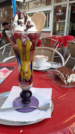 Ufff, na ja was sollte man schreiben wenn man nach etlichen Minuten reinlaufen muss damit man überhaupt Aufmerksamkeit erregt. Nur ein Tisch draußen außer uns. Dann Kaffe bestellt ging tunlich zügig, aber das Eis kamm überhaupt nicht. Nach längeren Zeit habe ich dann gefragt ob das Eis endlich fertig wäre. Die Antwort: Oooo vergessen. In zwischen 4 Tische besetzt und wir. Da wir es dann doch schon länger gewartet hatten und weiter müssten habe ich meinen Eis abbestellt,...