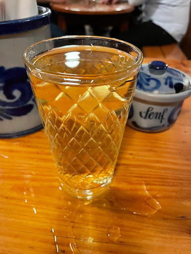 I absolutely enjoyed my visit to this restaurant! I picked it because I wanted to have some traditional German food in a classic German setting, and Klaane Sachsehäuser met all my expectations. The restaurant is quite large, with both indoor and outdoor seating. Since the weather was nice, I chose a table outside. Even though it was Sunday around 3 p.m., the place wasn’t very busy. Inside the restaurant has a classy, traditional German look and was very clean. The outdoor courtyard had a lovely design with plants, flowers, and decor touches; and everything was kept spotless. I really enjoyed the atmosphere all around me! My waiter was a very sweet guy who spoke excellent English. He took my order quickly, and the food arrived within about 12 minutes. The menu is fairly large, with a very good selection of German dishes. I went with the Classic Bratwurst Meal, which included two grilled bratwursts, mashed potatoes and sauerkraut. The meal was super tasty, everything was flavorful! The only minor issue for me was the portion balance – there was a bit too much sauerkraut, which I’m not a big fan of. Personally, I would have preferred more mashed potatoes instead. For my drink I ordered an apple juice, and it was fantastic – as apple juice in Germany always is. The menu prices were reasonable. My bill came to about €18. A big plus is that the restaurant accepts credit cards and Apple Pay, since many German restaurants in Frankfurt still only take cash for some reason (I’ve had this issue recently at a few other places). I can definitely recommend eating at Klaane Sachsehäuser! Based on what I tried and saw on other people’s plates, the food here generally seems very tasty, and the restaurant’s vibes make it...