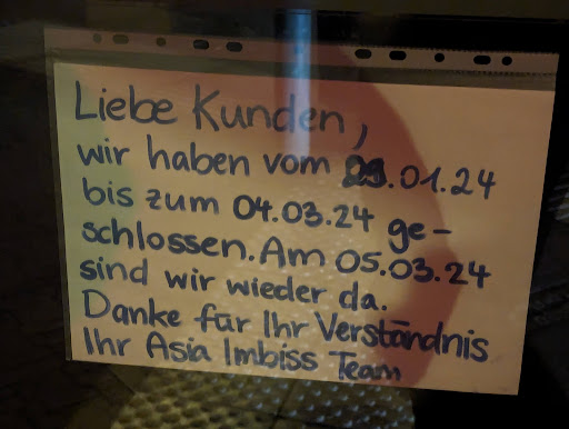 Wir bestellten in diesem Imbiss schon seit über 10 Jahren und waren sehr lange echt zufrieden mit dem Essen. Leider hat die Qualität der Gerichte seit etwa einem Jahr kontinuierlich abgenommen. Das Gemüse in den Soßen / Suppen ist völlig aufgeweicht (ganz offensichtlich nicht frisch zubereitet) und die Zutaten darin zunehmend auf die günstigsten reduziert. Dabei sind die Preise natürlich spürbar gestiegen. Schlechtere Qualität und Geschmack für höhere Preise - ein unfairer Deal und echt enttäuschend. Das war meine letzte Bestellung in diesem ehemaligen...