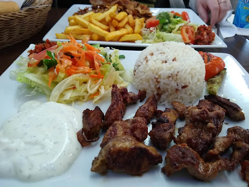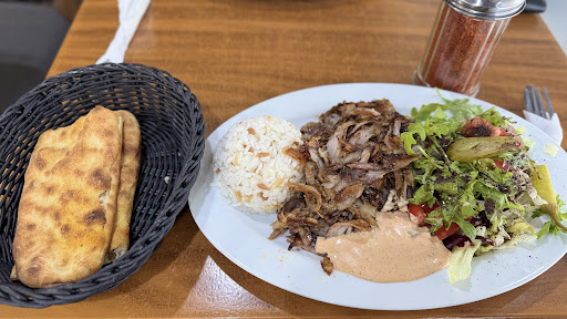 Nächstes mal nehme ich was anderes. Insgesamt kann man für 12€ nichts über die Menge sagen. Trotzdem das Lammspiessmenü sieht auf mein Foto irgendwie nicht so üppig aus wie auf dem Foto das bei denen über der Theke hängt. Das Fleisch war mir viel zu klein geschnitten für ein Spiess, mir war es zu durchwachsen nicht direkt mit Knorpel aber eben bisschen viel Fett anteil was viel Geschmack aber wenig essbares Fleisch mitbringt. Die Reis-kreation hatte nicht nur kaum Salz sondern war irgendwie fast schon eine Minute überkocht und etwas wässrig, es erinnerte mich fast an Milchreis. Was die braune Bestandteile darin waren waren habe ich leider nicht mehr rausschmecken können. Ich vermute Mandeln? Gut dass die Chili Sosse dem ganzen etwas Geschmack gegeben hat. Ich bereue dass ich nicht lieber Bülgur oder Pommes dazu genommen habe. Sonst war das Essen ganz passabel und prima zu empfehlen, der Laden ist sehr sauber, das Personal sehr freundlich. Vermisst habe ich den Türkischen Tee, was woanders üblich und kostenfrei dazu gibt. Schade war dass ich nicht gefragt wurde ob ich lieber Yogurt oder Knoblauch Sosse dazu will?, gut das die Sosse die da drauf war nicht zuviel Knoblauch hatte. Ich denke muss auf Yogurtbasis sein. Ich werde sicherlich wieder da was essen. Aber mit Sicherheit keinen Lammspiessmenü mehr. Dann doch lieber ein Lahmacun oder ein Döner oder sogar Pizza haben Sie dort, ein Versuch ist es allemal wert. Da ich satt geworden bin und der Laden Verbesserungspotential hat gebe ich eine gute Bewertung...