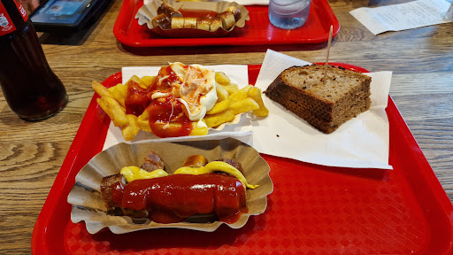 Read moreThe food and proportions are excellent. The people are friendly. The price is right. If one loves currywurst, this is definitely a place to be. It has more of a college campus vibe. Busy street corner, seating made to shovel the food down and go. I quite like this environment. If one is active, it's perfect. I have one small quibble -- they don't serve beer. To me, currywurst should be accompanied by a good, mass-produced German beer, and some frites. I guess if I was grabbing a bite between classes, a Coke Zero would be the way to go, and the pairing tasted okay, but I missed the beer. Beer not being here is like pb&j w/o milk. If you don't drink alcohol, then this place will be at the top of your list for...
