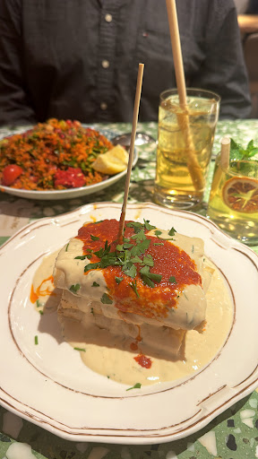 To the food.- what can I say? The Beyti were just tortilla like wraps filled with meat (which in fact were just whole hamburgers) and then drowned with copies amounts of yoghurt sauce and a spice red tomato sauce. Would never eat again! The manti were tasty but after I ate the first layer I found another 2 hamburger patties laying there hidden. Who in God's name needed these. In general the tast was good and I would eat again without the 'meat'. All in all not such a great experience and I think maybe other dishes would be better i.e. no meat. Will try maybe one more time but it's not high up on my list. Has nothing to do with food culture unfortunately. It's basically Vapiano...