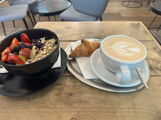 Read moreWe were looking for a coffee shop close to our hotel (Adina) for some morning pastries before we leave Frankfurt. I found this place through Google maps and it has 5 stars. I’m adding to their 5 star rating. The atmosphere is very inviting as soon as you walk in. Service was courteous. I had a granola yogurt bowl with fresh fruit. The fruit is indeed fresh and really tasty. Also had a chai tea latte with oat milk that I can actually taste the chai instead of just milk. The mini croissant is flaky and buttery. Yum!! My son had a flat white that he said is better than most. He also had a slice of the berry crumble cake. The perfect last stop to our European trip. Also, I saw a stream of regulars coming in while I enjoyed by breakfast. They also have a small patio...
