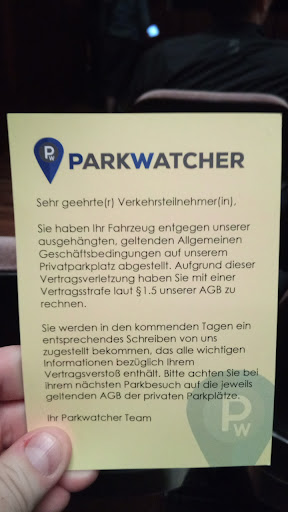 Ich war als Kunde dort und habe im Restaurant gegessen und mein Auto auf dem Parkplatz von Burger King abgestellt. Nach einem Monat habe ich ein Schreiben von einem Inkassounternehmen im Auftrag einer Parkwächter Firma über 36,00€ erhalten, weil ich angeblich ohne Parkscheibe geparkt hätte.