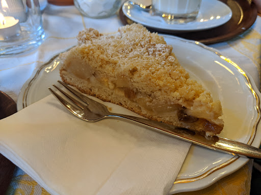 Read moreEin Café nach meinem Geschmack! Die Einrichtung ist eher "altbacken" mit einem sehr eigenen Charme und einer behaglichen Atmosphäre. Ich habe mich direkt wohlgefühlt. Hausgemachte Torten und Kuchen....eine stattliche Auswahl. Ich habe den Frankfurter Kranz und den Apfelkuchen gegessen.....hmmmm einfach mega lecker, Konditorei-Niveau! Die Stücke sind meiner Meinung nach so, wie ein Stück Kuchen sein soll....nicht zu klein und nicht zu groß und der Preis ist absolut in Ordnung!! Ich hatte einen Cappuccino, angenehm mild und bekömmlich. Der Service war zuvorkommend und total sympathisch, ich wurde freundlich begrüßt, der Tisch wurde abgewischt und obwohl einiges los war bekam ich Kuchen-Empfehlungen und diverse Infos (über das Café/die Inhaber). Ich empfand es als angenehm...habe mich sehr willkommen gefühlt! Die sanitären Anlagen waren in einem guten und sehr sauberen Zustand. Ich werde auf jeden Fall wiederkommen und mich weiter "durch die Karte probieren". Schön einen solchen Ort...