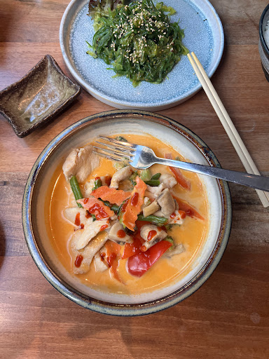 The food is good enough for me to have a business dinner. It is not a wow but Frankfurt is not the peak of gourmet, literally everyone can start a restaurant on the level of Asian street food. I asked my client to go to this restaurant for dinner on Sunday. It was crowded in the end of this L shape restaurant. A group of 20 people soaked the oxygen out of the end of the L thus it was hot and sticky air. We moved to opposite of the bar - with time it became better and I suspect the air conditioning does not work properly, in May it is still acceptable. The petite service girl was attentive, and maybe a bit too attentive - we were there about 1.5 hours and she came four times to ask whether we need more, whether we finished our plates, etc. This is a sign for restaurants to shush away customers. we paid for sea weed and a bowl and a curry plus a 1-litre water plus a limo and Coke Zero for 61 euro roughly. For business meals on Kaiserstr. it was fine - yet I would not go there for hungry tummy.