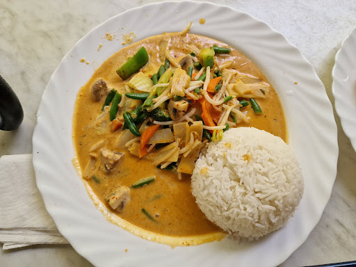 Read moreLeider kann man nicht weniger als einen Stern geben. Nach den durchweg positiven Bewertungen sind wir voller Vorfreude und Hunger in das unscheinbar Lokal eingetreten. Leider wurden wir von Essen arg enttäuscht. Schon die "Tom Kha Gai" war eine Frechheit und ähnelte eher eher schlechten, dünnen Tomatensuppe und ließ jeglichen Kokosgeschmack missen. Die Hauptspeisen waren an Geschmacksneutralität nicht zu überbieten. Die Nummer 43 bestand zu einem kleinen Teil aus lapprigen Hühnerfleischfetzen und überwiegenden Teil aus holzigen Bambussprossen. Gekrönt wurde das ganze mit einer großen handvoll unzerkleinerten Erdnüssen. Die Nummer S6 war ein Schlag ins das Gesicht eines jeden Hobbykochs. Die angekündigte Barbecuesoße bestand lediglich aus einer undefinierbaren, salzigen, braunen Flüssigkeit. Auch hier war das geschmacklose Fleisch eine Zumutung.