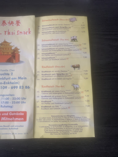 Viele Kritiken kann man getrost das WC runterspülen, besonders was die "teuren Preise" angeht! - EINE COLA KOSTET sage und schreibe 2 EURO (02.03.24)! Nicht 2,50, nicht 3, nicht 3,50, was man sonst überall woanders zahlt. Das Essen (Ente + grün + Kokos-Soße + Thai-Art) war lecker, das Gemüse frisch, der Reis genau richtig und Fleisch gab es nicht zu wenig und nicht die Ente-Billigsorte vom Imbiss an der Eissporthalle. Der Imbiss hier kann locker mit dem größeren Thai im Hessencenter mithalten. Nachteile: Es gibt nur ca. 6 Plätze und deswegen ziehe ich 2 Sterne bei Location ab, weil man hier wirklichnachbessern kann.