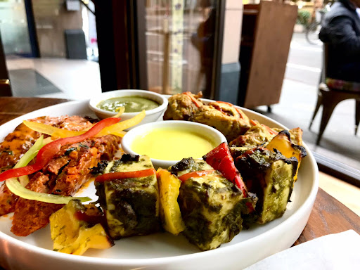 Food wasn't impressive and doesn't warrant the price - Sweet corn chicken soup was simply loaded with chicken stock cubes and nothing special. Very small portion for 10 euros. Gunpowder potato, a side dish - this was potato sauted, extremely spicy (like the name indicates) and had a mild sweet tinge. The potatos had no flavor by themselves and again nothing special about the dish. Butter naan was tasty. Chicken Tikka masala - tasted nothing like chicken Tikka masala. A very small portion for 23 euros... unimpressive. Butter chicken - Tasted nothing like butter chicken, loaded with cream. Again the portion doesn't justify its cost of 24 euros.