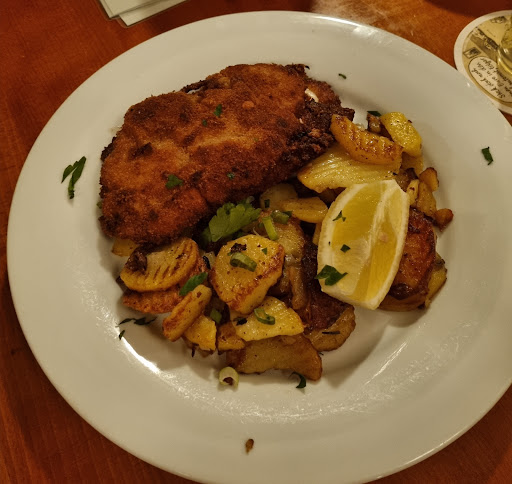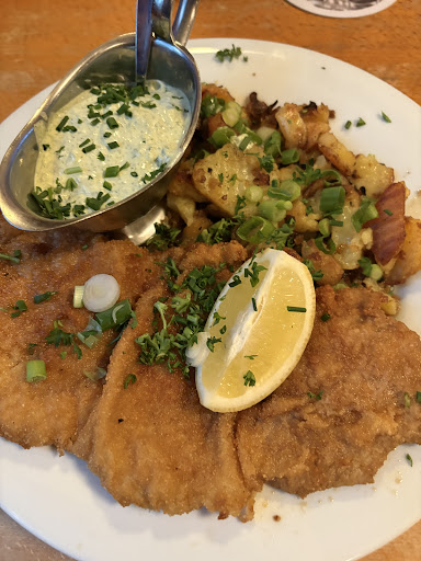 Read moreDer Buchwald zählt bei „Frankfurt geht aus“ seid Jahren zu den Top Restaurants im Bereich Apfelweinwirtschaften und das zu recht. Man sitzt ganz typisch in einem recht puristischen Restaurants ohne großartige Tischläufer, -dekorationen etc. Es gibt eine Saisonale Auswahl an verschiedenen Apfelweinen wodurch er sich durchaus abhebt oder auch den einfachen, klassischen Ebbelwoi im gerippten (Glas) oder Bembel. Bei der Speisekarte zieht sich das puristische fort. Es wird sich nicht grossartig verkünzelt, sondern man legt Wert auf das was eine gute Apfelweinwirtschaft ausmacht, nämliche Hessisch/Frankfurterische Küche. Dennoch bieten sie auch was für vegetarier an. Wir haben natürlich einen vierer Bembel getrunken und eine Flasche Wasser dazu bestellt. In der Vorspeise gab es einmal den klassischen Handkäs mit Musik, Butter und Brot und einen Tafelspitzsalat mit Handkäse. Beides super lecker. Der Tagelspitzsalat war sehr üppig. Wer keinen grossen Hunger hat kann diesen auch gut als Hauptgang bestellen. Im Hauptgang hatten wir einCordon Bleu und ein Frankfurter Schnitzel vom Schwein mit Frankfurter grie Soß. Beides kann man sehr empfehlen. Lediglich beim Cordon Bleu dürfte ein wenig mehr Käse drin sein. Die Schnitzel wurden schön ausgebacken und die gesamten Gerichte waren alle samt sehr lecker und Schmackhaft. Die Bedienung und vermutlich auch der Eigentümer (Nici) war sehr freundlich und kompetent. Wir haben uns Pudelwohl im Buchwald gefühlt und kommen gerne wieder. Vielleicht reicht es dann auch noch für ein...
