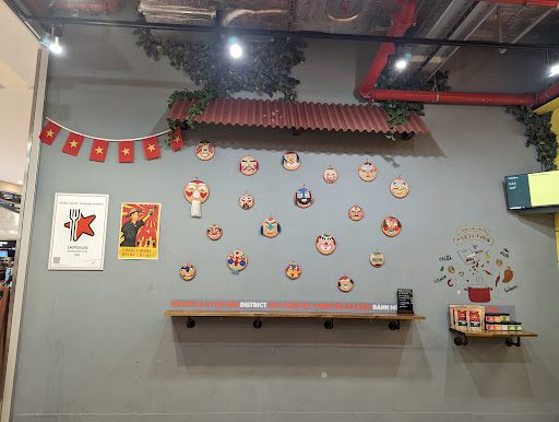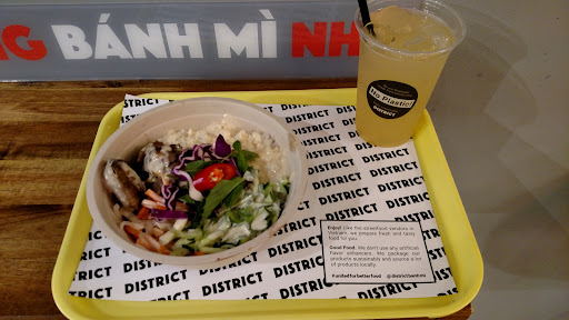 Overpriced, overrated Bahn mi. The pork belly meat in my sandwich was good, but was it worth over 12 euros for a tiny mediocre Bahn mi sandwich? Definitely not! I've had better Bahn Mi sandwiches and paid half of this price in Germany. The service here was fiarly slow for fast food. My colleague paid an additional 90 cents for Sriracha sauce, and they put on a dab on one side of the sandwich. He had to complain and they finally gave him the whole bottle to put on himself. For over 12€ you'd think that they would just offer Sriracha sauce on the table. The mango rice was extremely disappointing with barely a piece of mango in sight, probably the worst I've ever tried and it seems quite hard to mess up. I don't mind the tiny plastic chairs as it brings back a bit of nostalgia from traveling through Vietnam, but I can do without the cockroaches. Yes, my first time seeing a cockroach in Frankfurt was on the wall of the District Bahn Mi Restaurant. Three of us left this restaurant having paid 64€ for our meals and still feeling hungry. We had to walk around the corner to pay 33€ for Chipotle to satisfy our needs at a reasonable price (in addition to already eating at District Bahn Mi). Stop rating up overrated food Frankfurt! This place is just meh and...