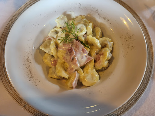Service very kind. Food very well. Menu with 'Tagliatelle with Zucchini and prawns', a salad together and a Trio from the oven, Tiramisu as a final together with a coffee. Nice!