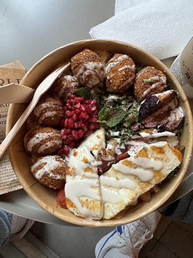 ⭐⭐⭐⭐⭐ As a Berliner accustomed to the finest in Oriental cuisine, stumbling upon this falafel gem in Frankfurt was an absolute delight. From the moment I stepped in, I was greeted with authentic aromas and an inviting atmosphere that transported me back to the heart of the Middle East.Let's talk about the star of the show: the falafel. Perfectly crispy on the outside, yet wonderfully soft on the inside, each bite was a symphony of flavors. Paired with fresh ingredients and tantalizing sauces, it was a culinary masterpiece that left my taste buds dancing with joy.But it didn't stop there. The addition of halloumi was a stroke of genius, adding a delightful layer of richness to an already heavenly dish.Beyond the food, the ambiance was equally captivating. The authentic interior design created a cozy yet vibrant setting, further enhancing the dining experience.And can we talk about the service? Lightning-fast and incredibly friendly, the staff ensured that every moment spent here was nothing short of exceptional.In conclusion, if you find yourself in Frankfurt craving a taste of the extraordinary, look no further. This falafel haven is a must-visit, and I, for one, will eagerly return whenever...