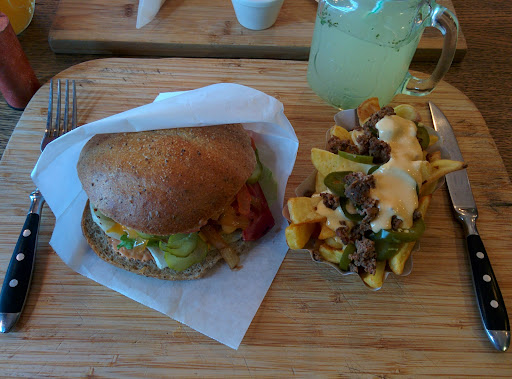 Read moreThey say that healthy food doesn't look great...Well, here it is not the case. The food not only that looks great, but also tastes wonderful. They have vegan choices, too. You have to go to the counter in order to order and pay and get the drinks. Then the food is brought to the table. The prices are good, too, not expensive. We paid for a BBQ burger and a cheese burger, steamed and sweet potatoes and two lemonades( Apple, Ginger, Mint/ Lemon, Lime, Mint) ...about 25 euros for two people, without dessert. The place is not big, there are about 10 tables inside for maybe 35-40 people and there are tables outside, too. Their website says that reservations are not needed, but we did reserved a table for 9 people and they were very accommodating. The guy at the counter was very friendly, he even helped us to...